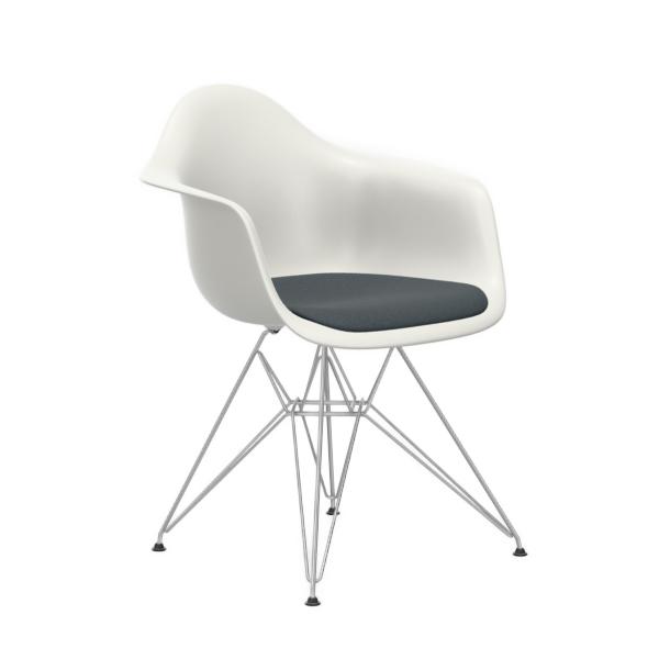 VITRA Eames Plastic Armchair with cushion DAR NEW DIMENSIONS (White, cushion blue ice/swamp brown - Polypropylene white , chromed steel and Hopsak fabric)