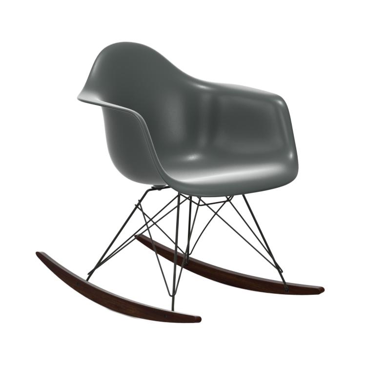 VITRA rocking chair Eames Plastic Armchair RAR basic dark base et dark maple (Granite Grey RE - Polypropylene foam, painted steel thread and wood)