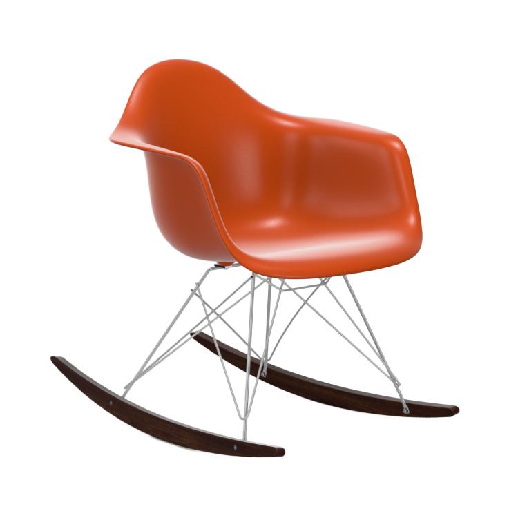 VITRA rocking chair Eames Plastic Armchair RAR chromed base et dark maple (Rusty Orange RE - Polypropylene, chromed steel and wood)