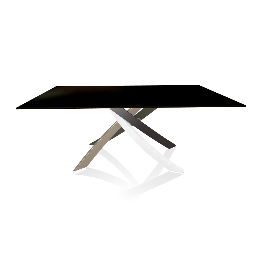 BONTEMPI table with multicolor elegant frame ARTISTICO 20.00 180x106 cm (Glossy black lacquered - Glass top and structure in multicolor elegant lacquered steel)