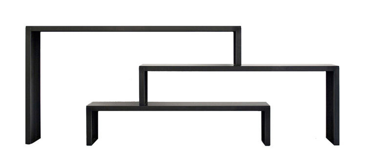 Babilonia Zeus is a modular set of three consoles. Press formed metal plate structure. Black phosphating treatment, end fixation with bees wax. As an alternative, it is possible to order on demand the version with embossed white or copper-black colour.