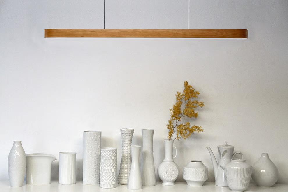 LZF LUZIFER suspension lamp I-LINE SHORT white canopy dimmer DALI 4000K (Yellow - Wood Veneer)