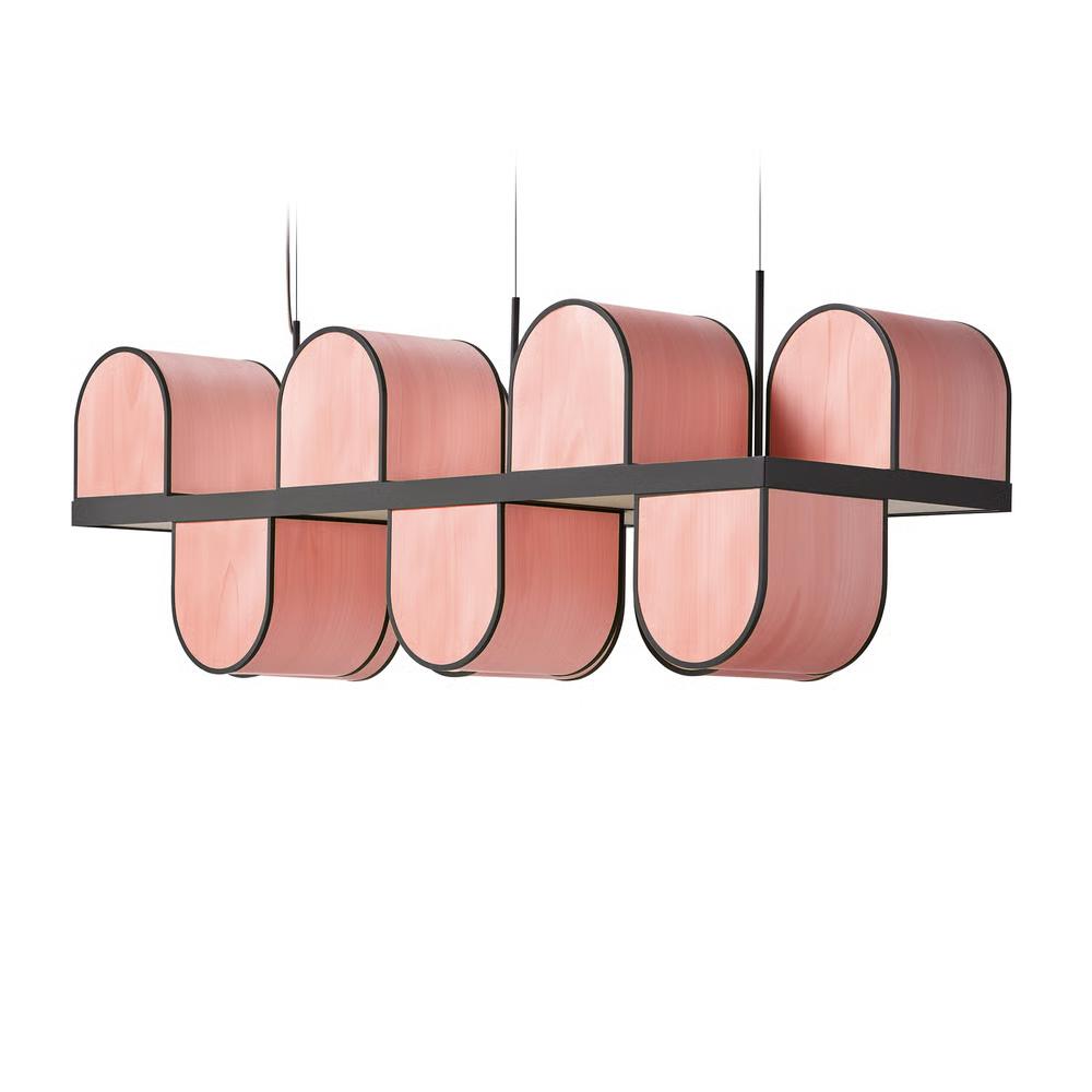 LZF LUZIFER suspension lamp OSCA LARGE (Pale pink, metallic grey frame - Wood Veneer)