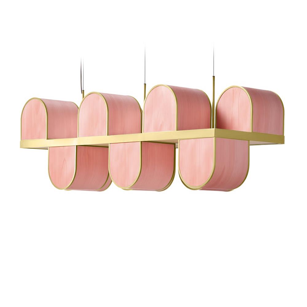 LZF LUZIFER suspension lamp OSCA SMALL (Pale pink, metallic gold texture - Wood Veneer)