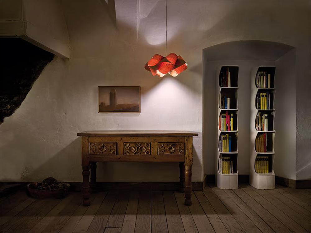 Swirl Lzf is a suspension lamp. Swirl excites the eye with its eddying and whirling folds, their twisting twirl a sensuous feat. Designed by Ray Power, Swirl is an accomplished pendant, its form thoughtfully considered and sculptured. Power’s designs are typically based on geometry and his predilection for creating three-dimensional forms from flat materials (wood veneer). Swirl is no exception, its precise contours brought to life in stereo.