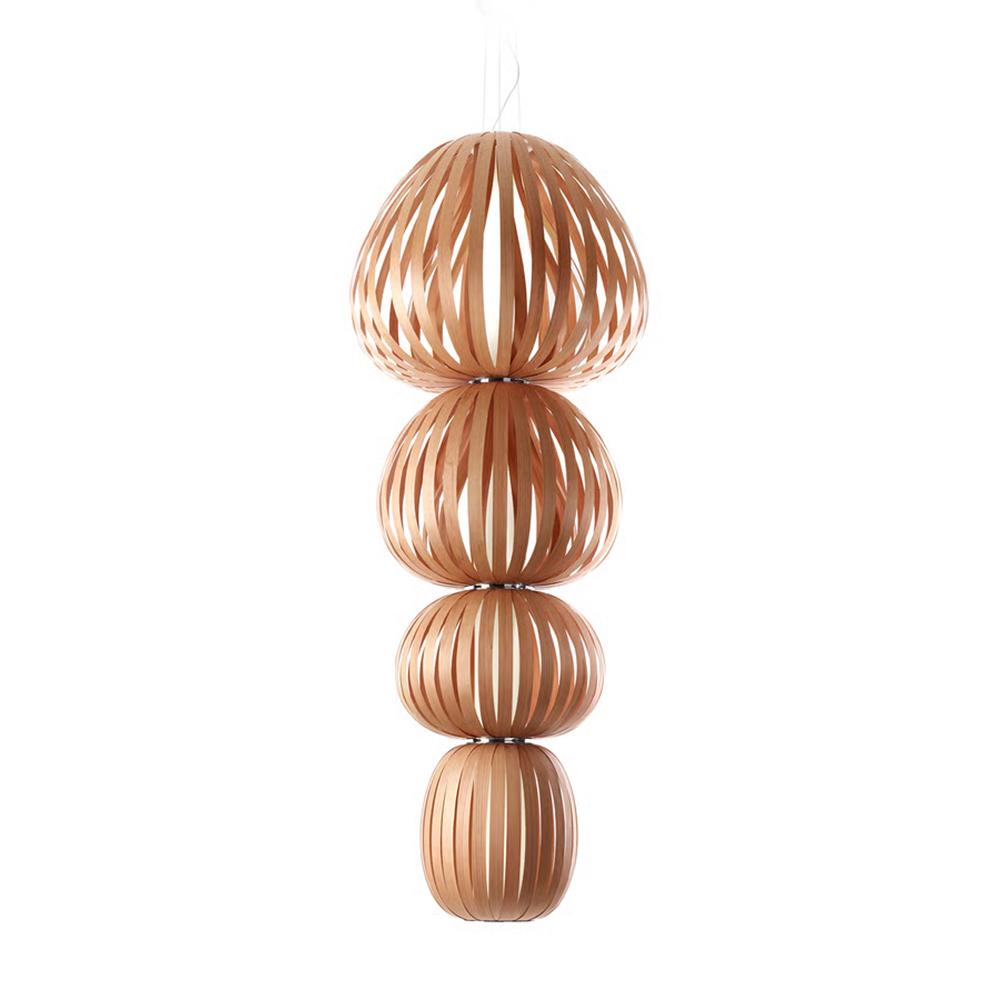 A sublime lighting structure, Totem has the emblematic air of a sacred object, a light whose shape and spirit are reflected in cultures worldwide. Available in three stacked variations, the Totem pendant diffuses warm light through the gaps in its wood veneer strips. As a physical entity, Totem’s presence is impressive. Just as important, its spiritual quality is entirely unreserved.