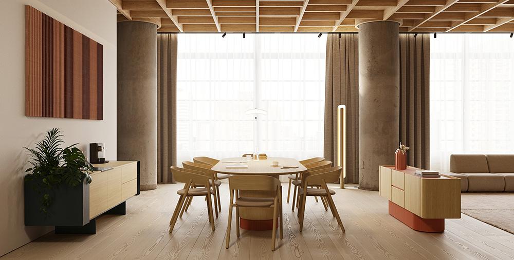 The Dune sideboard is a designer piece of furniture inspired by the shape of desert dunes, with a natural and functional design.