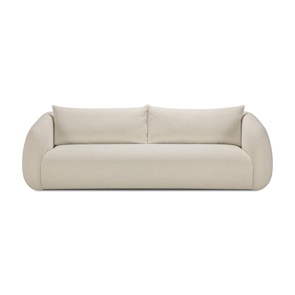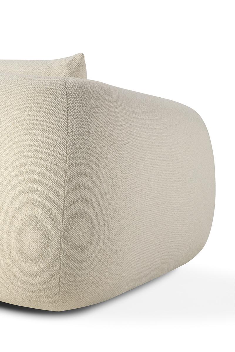 The Contour Ethnicraft sofa pairs generous proportions with a warm, welcoming silhouette. A gently curved backrest wraps around the seat, creating a cocooning effect that feels both elegant and embracing. Upholstered in richly textured fabric and detailed with refined double stitching, Contour offers deep comfort and visual softness. Whether for quiet lounging or shared moments, it brings relaxed sophistication to contemporary living.