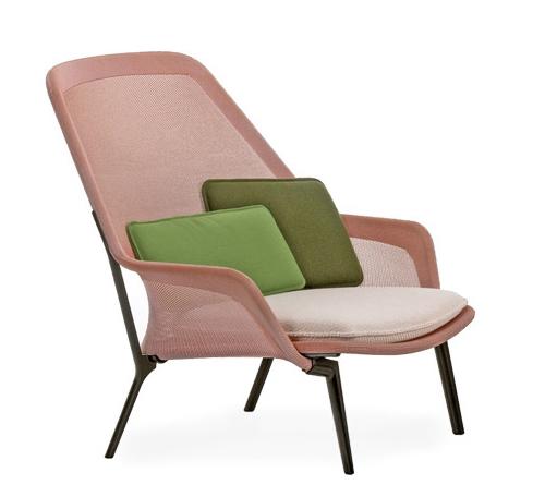 Ronan and Erwan Bouroullec created this expansive armchair by using an extremely strong, precisely shaped knit which is stretched over the metal frame like a fitted stocking. Thanks to the knit sling cover, the Slow Chair combines soft comfort with ergonomic support, which is further enhanced by thin seat and back cushions. The translucent sling cover replaces the thick cushions of traditional armchairs, resulting in a design that is lightweight, yet generously proportioned. The restrained appearance of the Slow Chair is equally appealing in the living room or winter garden, while offering unrestrained seating comfort.