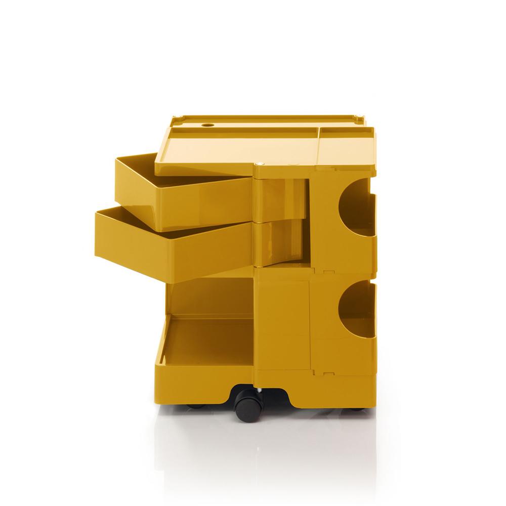 A historic designer icon, Boby B-Line trolley storage unit sports a dynamic approach and high degree of versatility. Designed to guarantee simple vertical modularity, it offers a wide range of different configurations to customise your storage. The ABS plastic structure, composed of drawer and shelf modules, is mounted on 5 polypropylene swivel casters and offers 4 different height solutions. Part of the permanent collection of MoMA in New York and the "Triennale" in Milan, Smau Prize in 1971. Upon request, it is possible to purchase the shelf in plywood or cork.