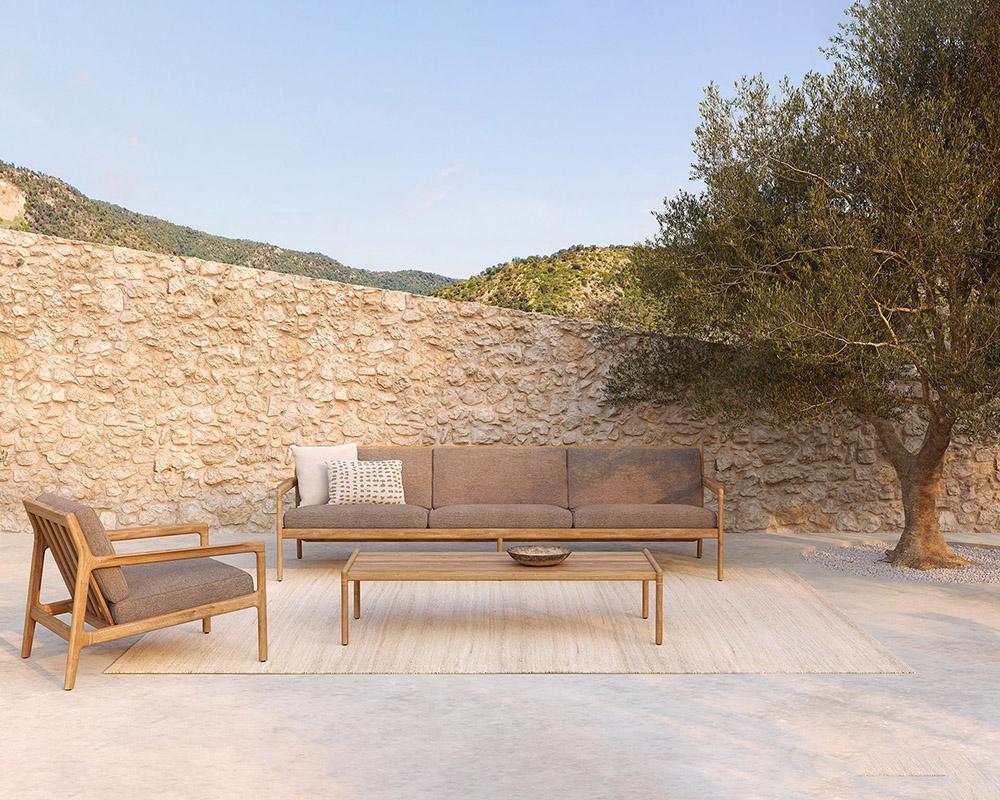 ETHNICRAFT outdoor 3 seater sofa JACK (Natural teak and Mocha fabric - Solid wood and polypropylene)