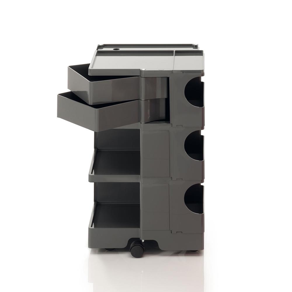 Icône historique du design, le chariot-armoire Boby B-Line se distingue par son approche dynamique et sa grande flexibilité. Conçu pour garantir une composition verticale simple, il permet d’obtenir différentes configurations avec des capacités personnalisées. La structure en ABS, composée de modules avec tiroirs et étagères, est montée sur 5 roulettes pivotantes en polypropylène et propose 4 solutions en termes de hauteur. Il fait partie de la collection permanente du MoMA de New York et de la Triennale de Milan, Prix Smau en 1971. Sur demande, il est possible d'acheter l'étagère en contreplaqué ou en liège.