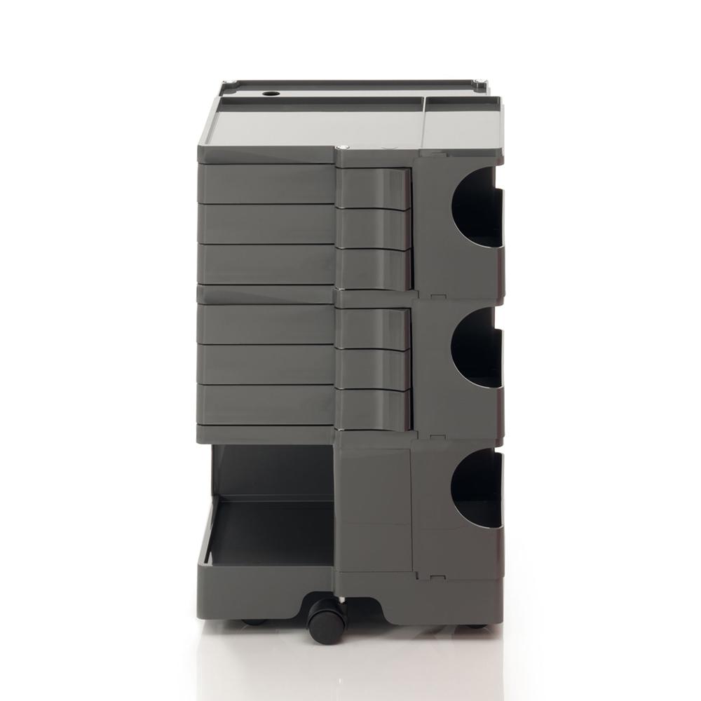 Icône historique du design, le chariot-armoire Boby B-Line se distingue par son approche dynamique et sa grande flexibilité. Conçu pour garantir une composition verticale simple, il permet d’obtenir différentes configurations avec des capacités personnalisées. La structure en ABS, composée de modules avec tiroirs et étagères, est montée sur 5 roulettes pivotantes en polypropylène et propose 4 solutions en termes de hauteur. Il fait partie de la collection permanente du MoMA de New York et de la Triennale de Milan, Prix Smau en 1971. Sur demande, il est possible d'acheter l'étagère en contreplaqué ou en liège.