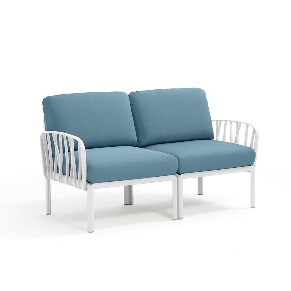 NARDI canapé à 2 places pour l'extérieur KOMODO (Blanc / Adriatic - Polypropylène fibre de verre et tissu Sunbrella)