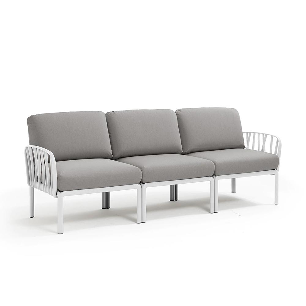 NARDI canapé à 3 places pour l'extérieur KOMODO (Blanc / Gris - Polypropylène fibre de verre et tissu acrylique)
