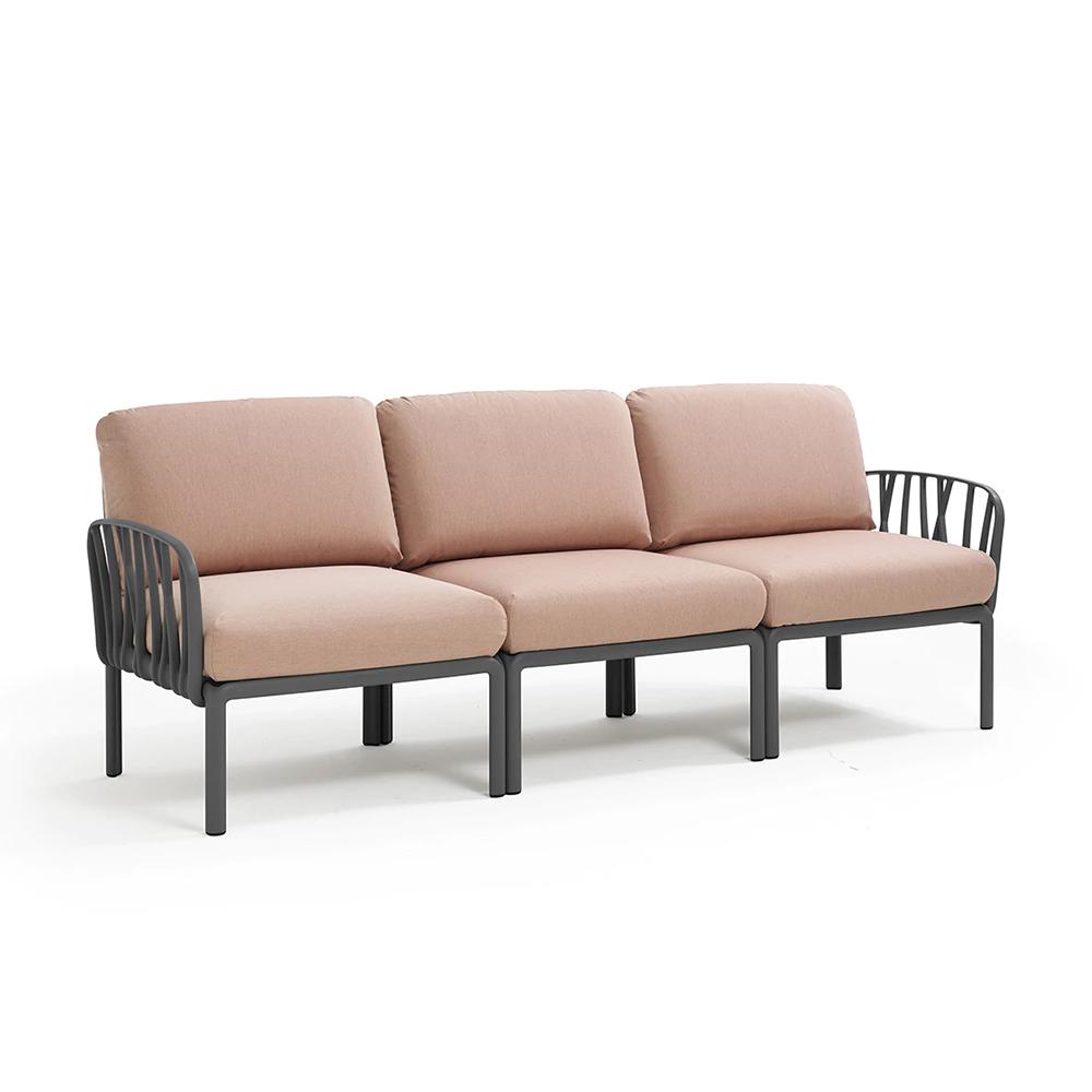 NARDI canapé à 3 places pour l'extérieur KOMODO (Anthracite / Rose quartz - Polypropylène fibre de verre et tissu acrylique)