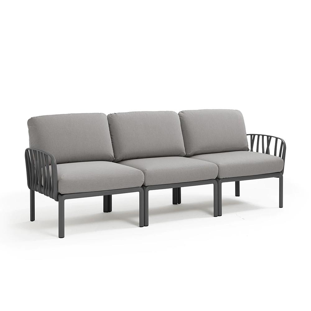 NARDI canapé à 3 places pour l'extérieur KOMODO (Anthracite / Gris - Polypropylène fibre de verre et tissu acrylique)