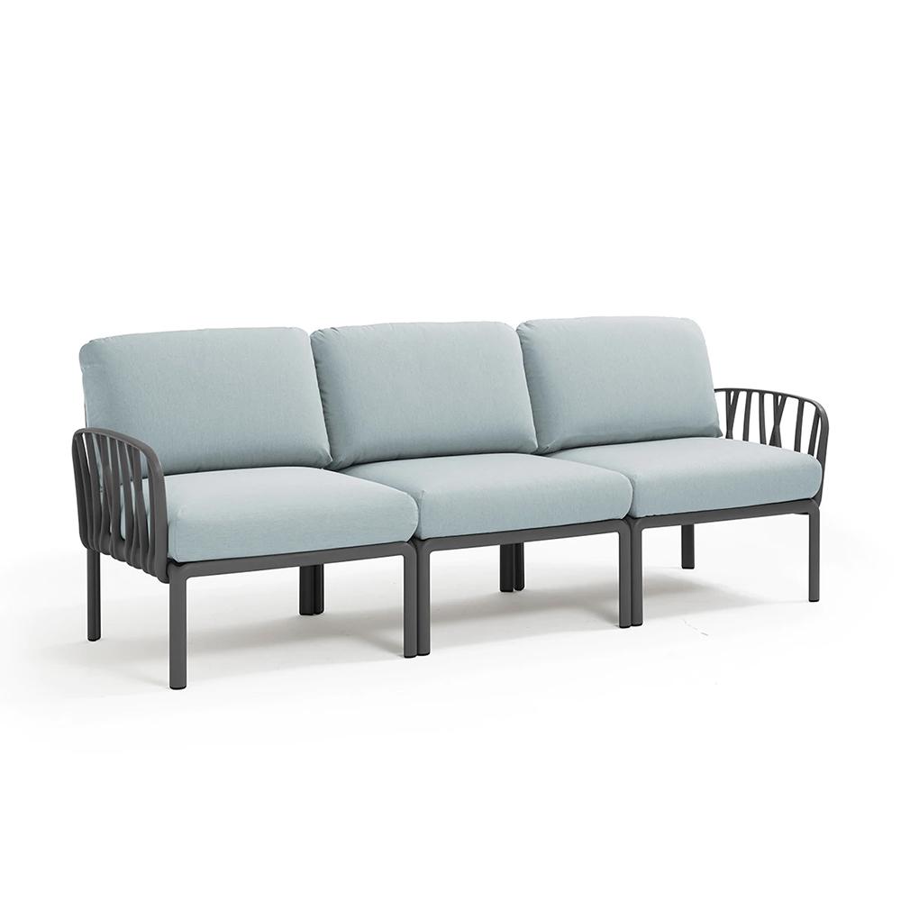 NARDI canapé à 3 places pour l'extérieur KOMODO (Anthracite / Glace - Polypropylène fibre de verre et tissu Sunbrella)