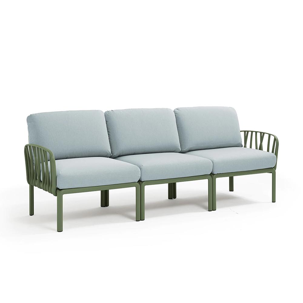 NARDI canapé à 3 places pour l'extérieur KOMODO (Agave / Glace - Polypropylène fibre de verre et tissu Sunbrella)