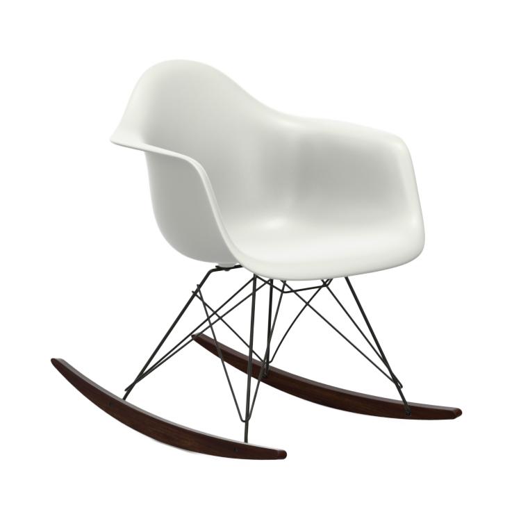 VITRA RAR fauteuil à bascule Eames Plastic Armchair base basic dark et érable foncé (Cotton white RE - Polypropylène expansé, fil en acier verni et bois)