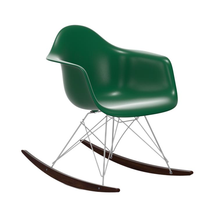 VITRA RAR fauteuil à bascule Eames Plastic Armchair base chromée et érable foncé (Smeraldo RE - Polypropylène, fil d'acier chromé et bois)