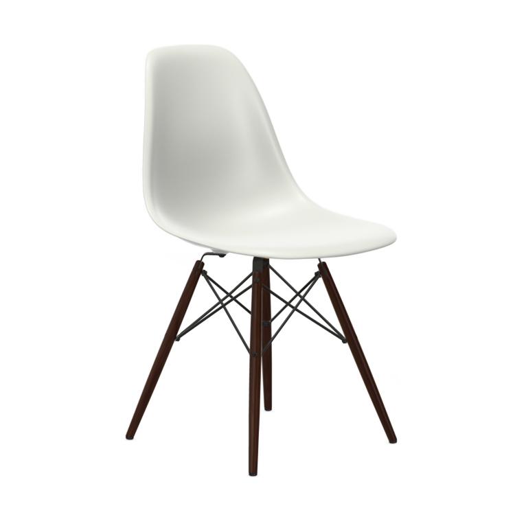 VITRA chaise avec base en érable foncé Eames Plastic Side Chair DSW NOUVELLES DIMENSIONS (Cotton white RE - Polypropylène et bois)