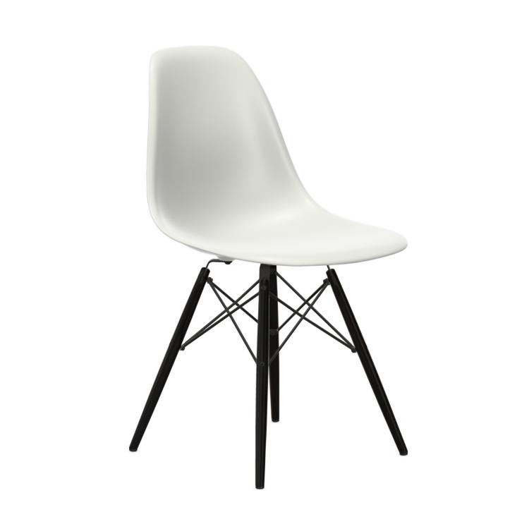 VITRA chaise avec base en érable noir Eames Plastic Side Chair DSW NOUVELLES DIMENSIONS (Cotton white RE - Polypropylène et bois)