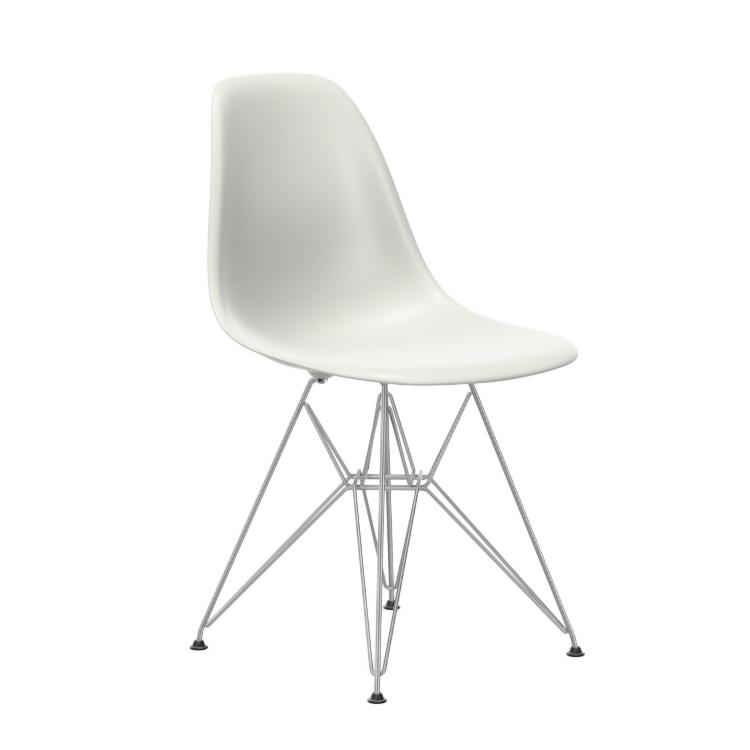 VITRA chaise Eames Plastic Side Chair DSR NOUVELLES DIMENSIONS (Cotton white RE - Acier chromé / Polypropylène)