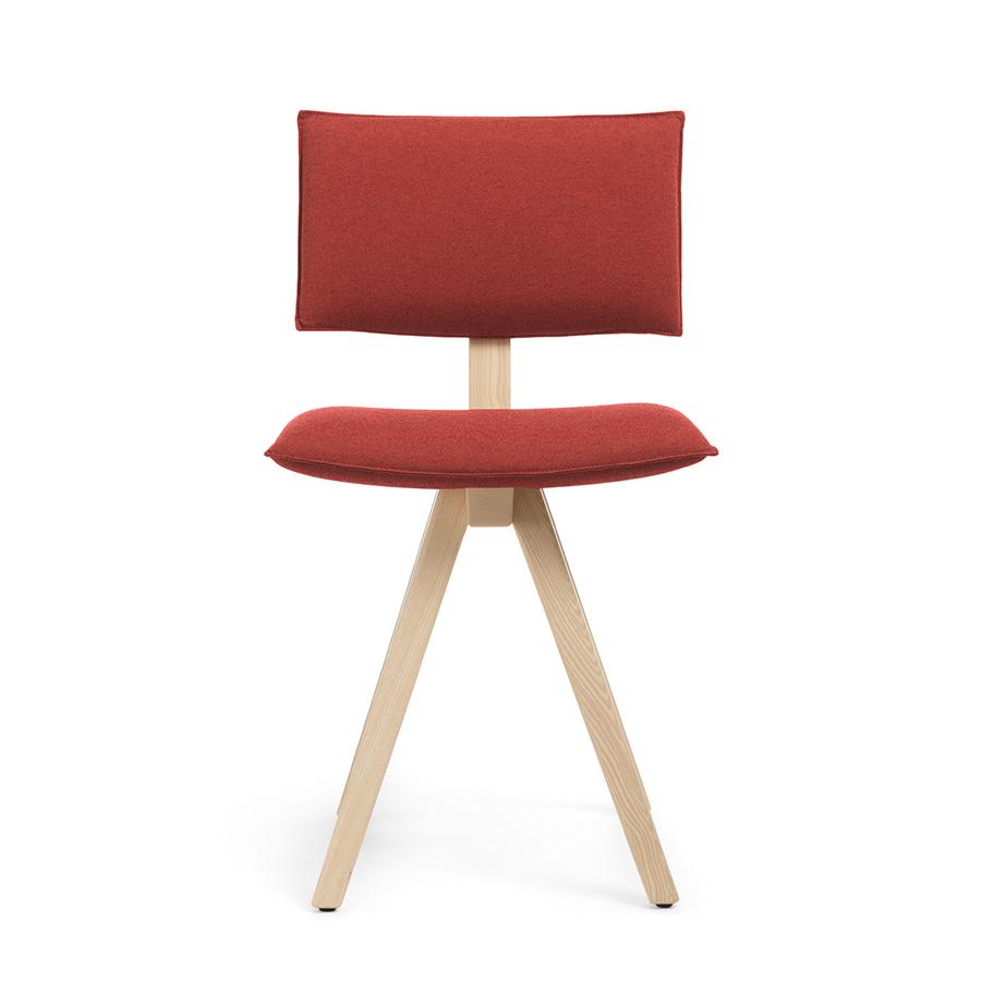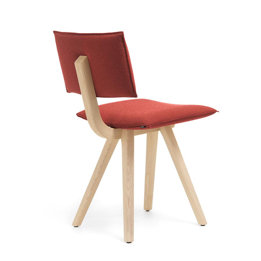 Barre courbée à vapeur et pieds en massif de frêne naturel, teinté noir ou chêne. Assise et dossier rembourrés et revêtus en tissu déhoussable.