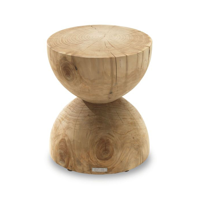 CLESSIDRA (sablier) est un produit confirmé de l'imagination fertile de Mario Botta et l'esprit. Le tabouret est taillé d'un bloc seul de bois de cèdre parfumé. Le bloc de cèdre solide, précédemment équarri de, est placé à l'intérieur d'une machine spéciale qui taille le bloc autour pour obtenir cette forme fortement originale qui ressemble presque à deux hémisphères, un placé à l'envers sur l'autre. CLESSIDRA des tabourets peut aussi être accumulé : on peut fournir une épingle métallique pour rayer le centre de chaque place pour qu'un tabouret puisse être mis à un autre pour créer "une sculpture" moderne aussi bien qu'un meuble intéressant.