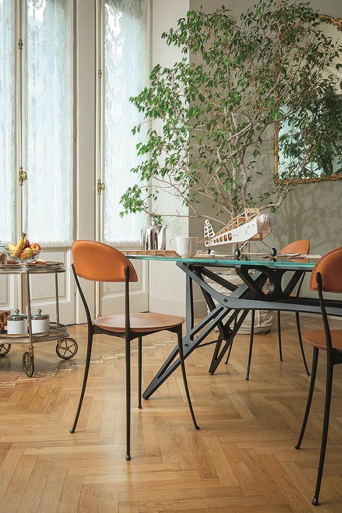Tonietta Zanotta est une chaise avec la structure en alliage d’aluminium poli ou verni noir. Assise et dossier en polypropylène recouverts en cuir sellier 95 dans les couleurs de la fiche.