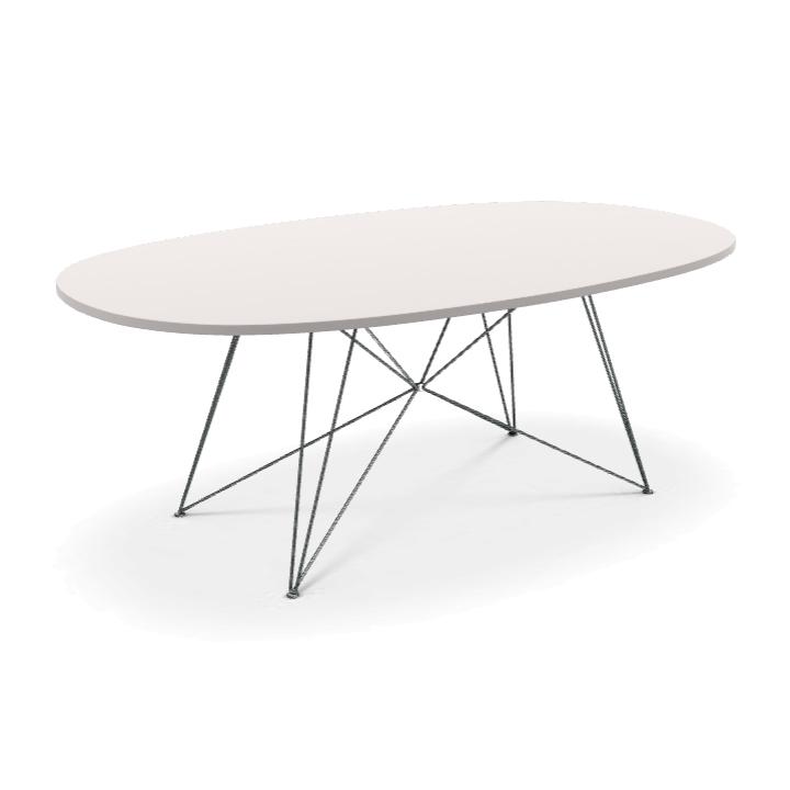 XZ3 un des produits les plus vendus de Magis, la table caractérisée par la très belle base architecturale en fil d'acier chromé ou peint en noir ou blanc. Avec une esthétique linéaire, les lignes angulaires tracent des figures géométriques fines en laissant un signe profond dans l'espace et dans les yeux de qui la regarde. La beauté de cette merveilleuse structure confère à l'ensemble simplicité, légèreté et élégance. La table XZ3 s'adapte très bien que ce soit en cuisine qu'en salle de séjour.