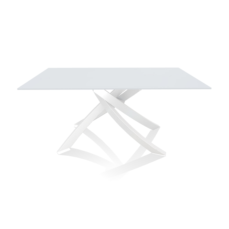 BONTEMPI table avec structure blanche ARTISTICO 20.13 160x90 cm (Anti-rayures blanc opaque - Plateau en verre et structure en acier laqué blanc)