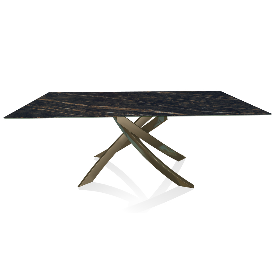 BONTEMPI table avec structure laiton vielli ARTISTICO 52.45 200x100 cm (Noir Desir brillant - Plateau en SuperMarbre et structure en acier laqué laiton vielli)