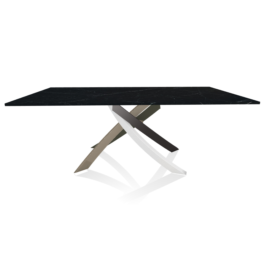 BONTEMPI table avec structure multicolor elegant ARTISTICO 20.01 200x106 cm (Noir Marquina - Plateau en marbre naturel et structure en acier laqué multicolor elegant)