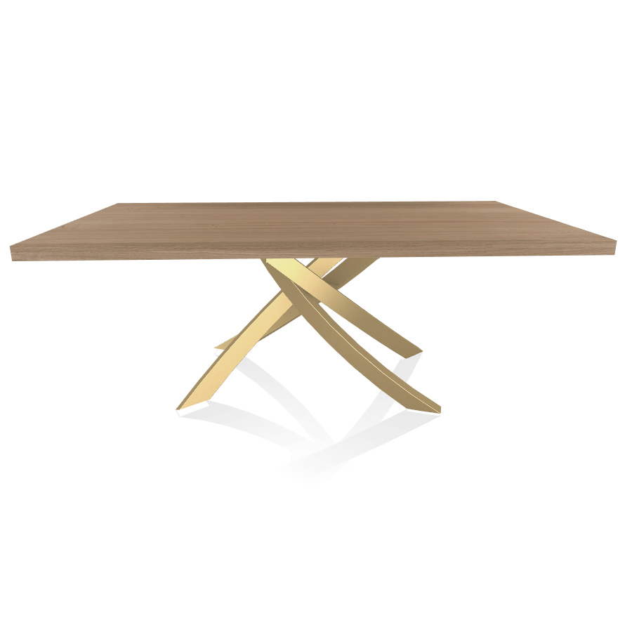 BONTEMPI table avec structure or ARTISTICO 20.01 200x106 cm (Chêne naturel - Plateau en bois plaqué et structure en acier laqué or)