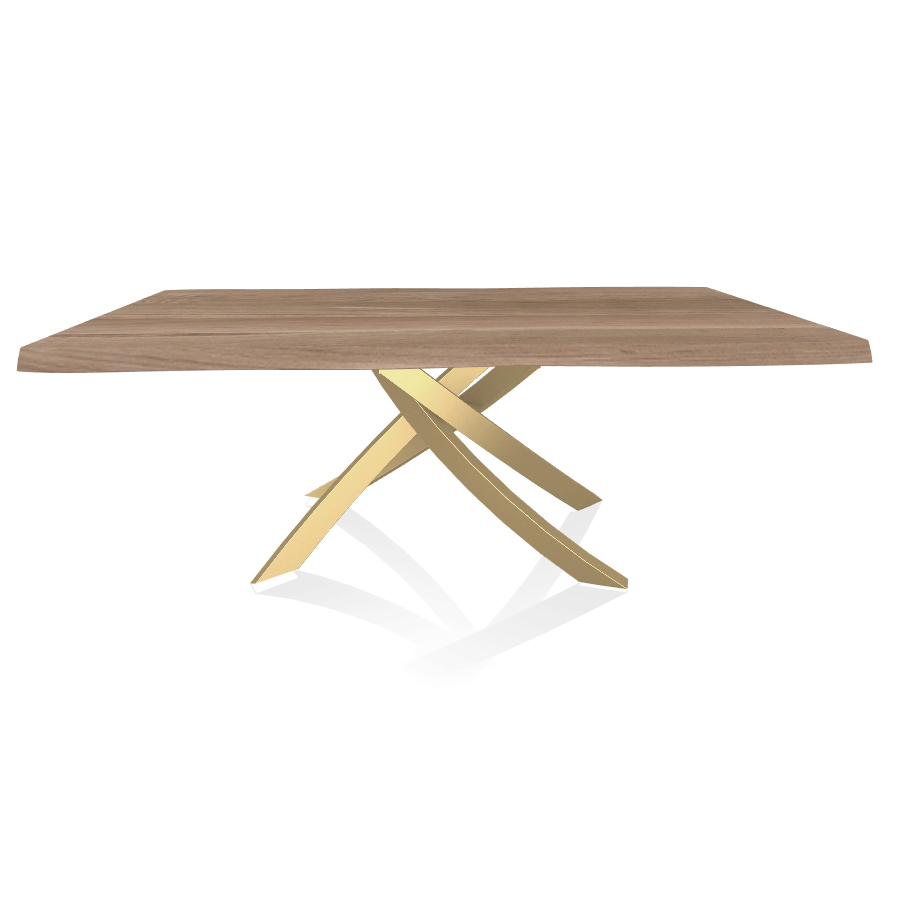 BONTEMPI table avec structure or ARTISTICO 20.01 200x106 cm (Chêne naturel - Plateau en bois plaqué avec bords massif irrégulier et structure en acier laqué or)