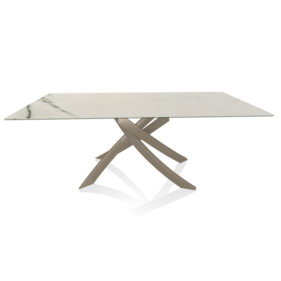 BONTEMPI table avec structure sable ARTISTICO 52.45 200x100 cm (Blanc Statuario mat - Plateau en SuperMarbre et structure en acier laqué sable)