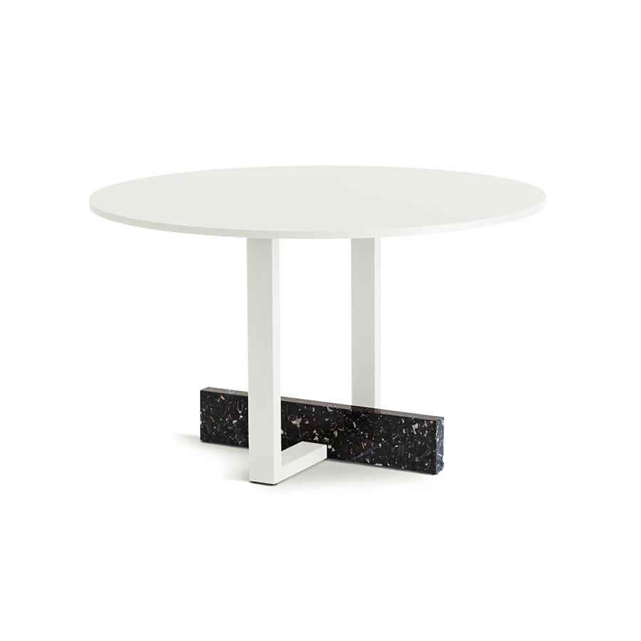 MAGIS table ronde Pied-à-terre (Blanc - Acciaio verniciato, marmo Portoro riciclato e piano in laminato Fenix)