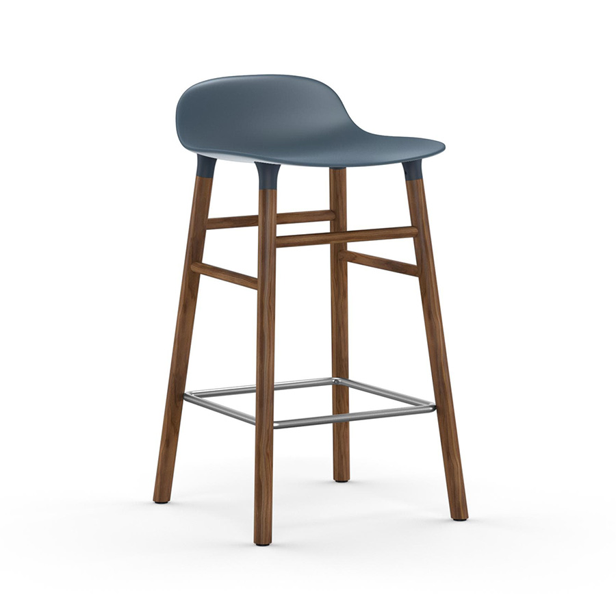 NORMANN COPENHAGEN tabouret FORM BARSTOOL H 65 cm avec piètement en noyer (Bleu - Polypropylène et noyer)
