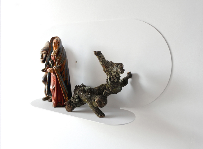Aureole Covo est une collection de petites étagères en acier, de différentes formes et tailles. Ils sont accrochés au mur à votre convenance pour rassembler vos collections d'objets choisis avec soin. Votre bibliothèque, héritage de cultures et de traditions, de superstitions et de religions, d'art et d'histoire, de voyages et de trésors, sera rendue magnifique par Aureole.