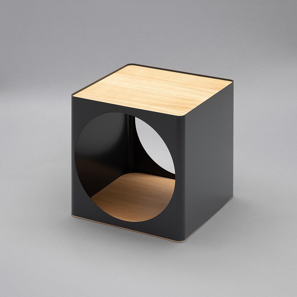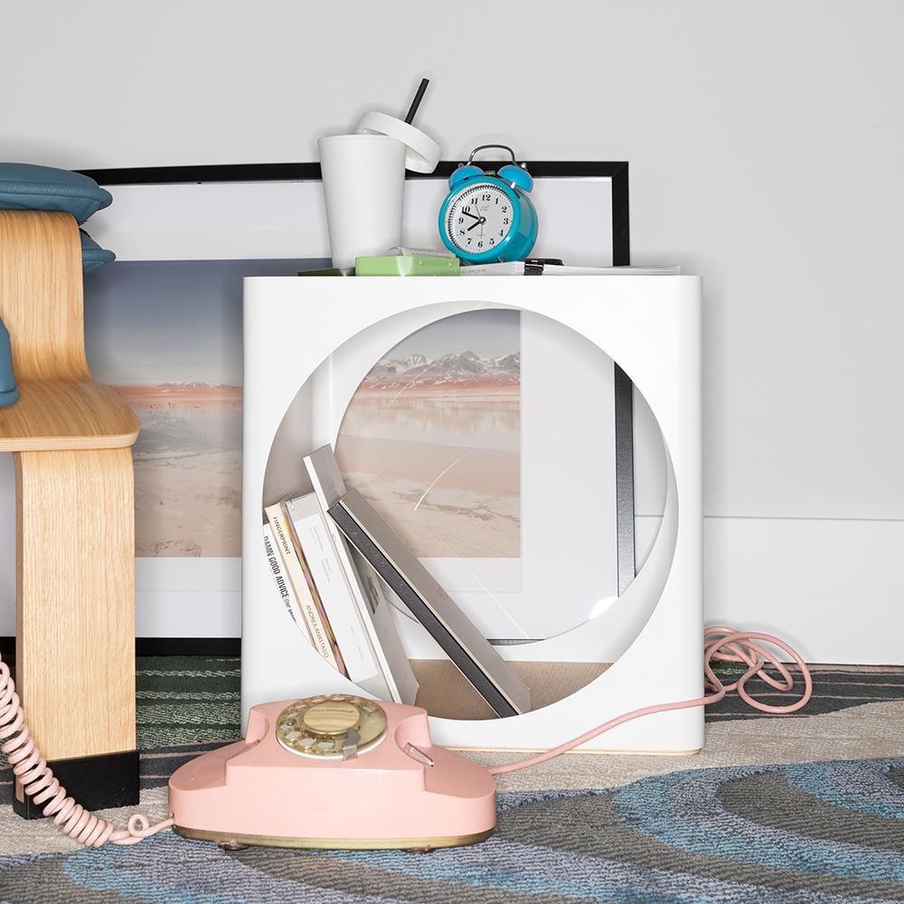 Ring B-Line est une module de rangement qui, utilisé individuellement, peut agir comme une table basse et une fois empilé multiplie la capacité de décorer les murs ou de créer des cloisons. Également disponible sur roulettes, il est constitué d’une coque en tôle
