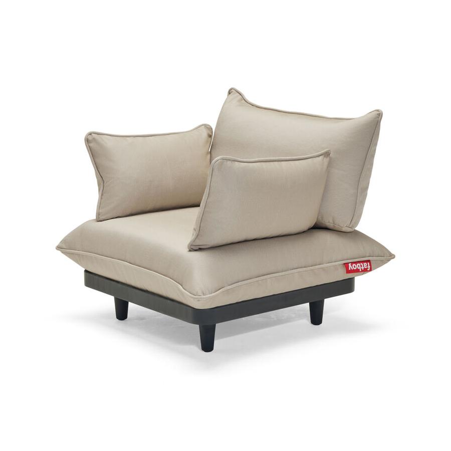 Paletti Fatboy est un canapé lounge modulable, ce qui te permet de personnaliser ton ensemble de salon. Un canapé d'angle, un canapé en U, une méridienne ou deux banquettes côte à côte? Donne vie à ta composition en quelques clics. Plonge dans les coussins les plus luxueux que tu aies jamais vus. Cette version Royal a un tissu plus épais et un look raffiné qui donne une sensation de luxe supplémentaire. Et ne t’inquiètes pas si tu renverses quelque chose. Le Paletti Fatboy est ultra résistant et peut supporter beaucoup de choses. Essuie avec un chiffon humide, un jet haute pression, ou passe les housses de coussin à la machine. Ton Paletti Fatboy sera à nouveau comme neuf. Ton Paletti Fatboy résistera à un orage d’été, mais en cas de pluie persistante, nous te conseillons d’utiliser la housse Paletti Cover sur demande.