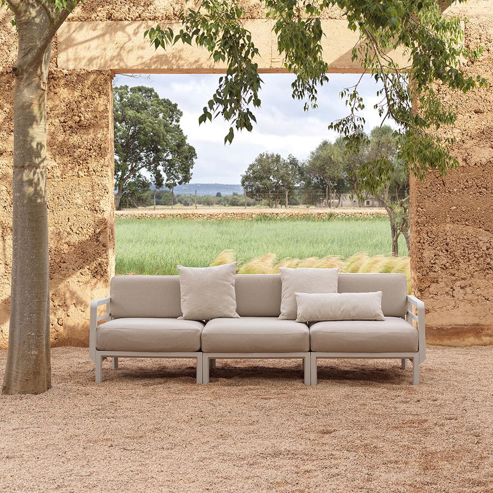 NARDI canapé d'extérieur 3 places MAXIMO (Plâtre / Perle - Fibre de verre régénérée, polypropylène et tissu Sunbrella hydrofuge)