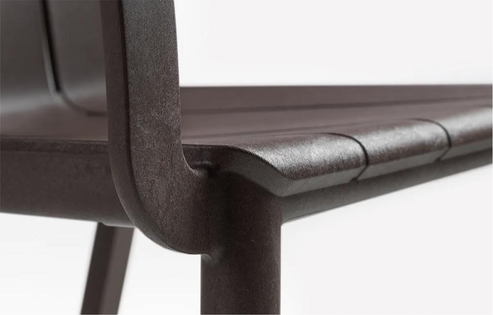 Dans la version couleur Terra, la fauteuil est en polypropylène fiberglass RÉGÉNÉRÉ. Nardi a introduit le programme industriel Regeneration pour la production de mobilier d'extérieur, en plastique recyclé, recyclable lui aussi.