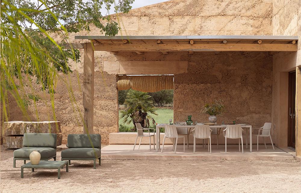 Dans la version couleur Terra, la fauteuil est en polypropylène fiberglass RÉGÉNÉRÉ. Nardi a introduit le programme industriel Regeneration pour la production de mobilier d'extérieur, en plastique recyclé, recyclable lui aussi.