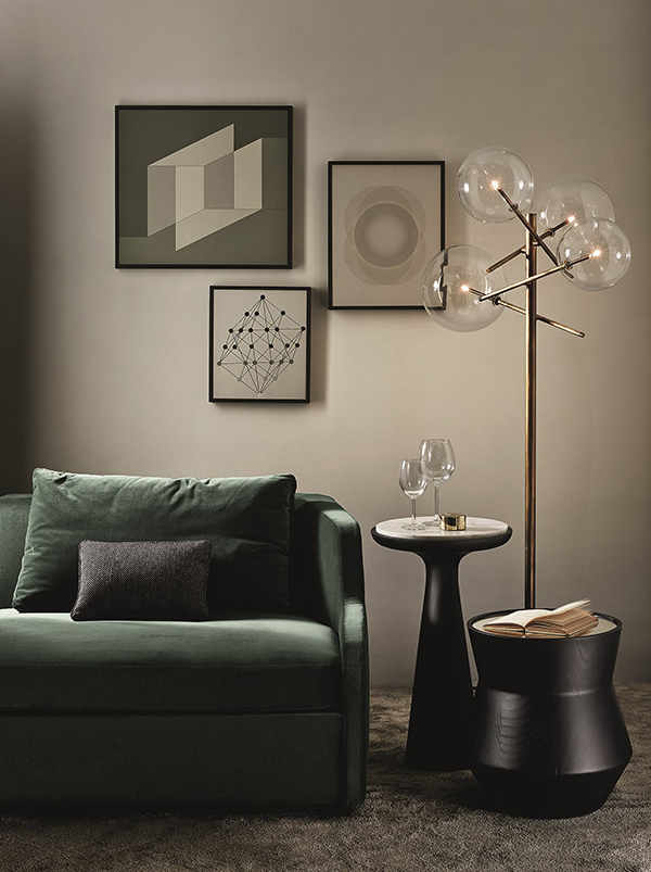 La lampe de sol Bolle Gallotti & Radice a été conçue par Massimo Castagna en 2014. Les sphères de la lampe Bolle sont en cristal soufflé bouche transparent. La base est en laiton bruni à la main, teinté naturellement et inhomogène. Son savoir-faire confère à chaque pièce une particularité qui la rend exclusive. Dimmable.