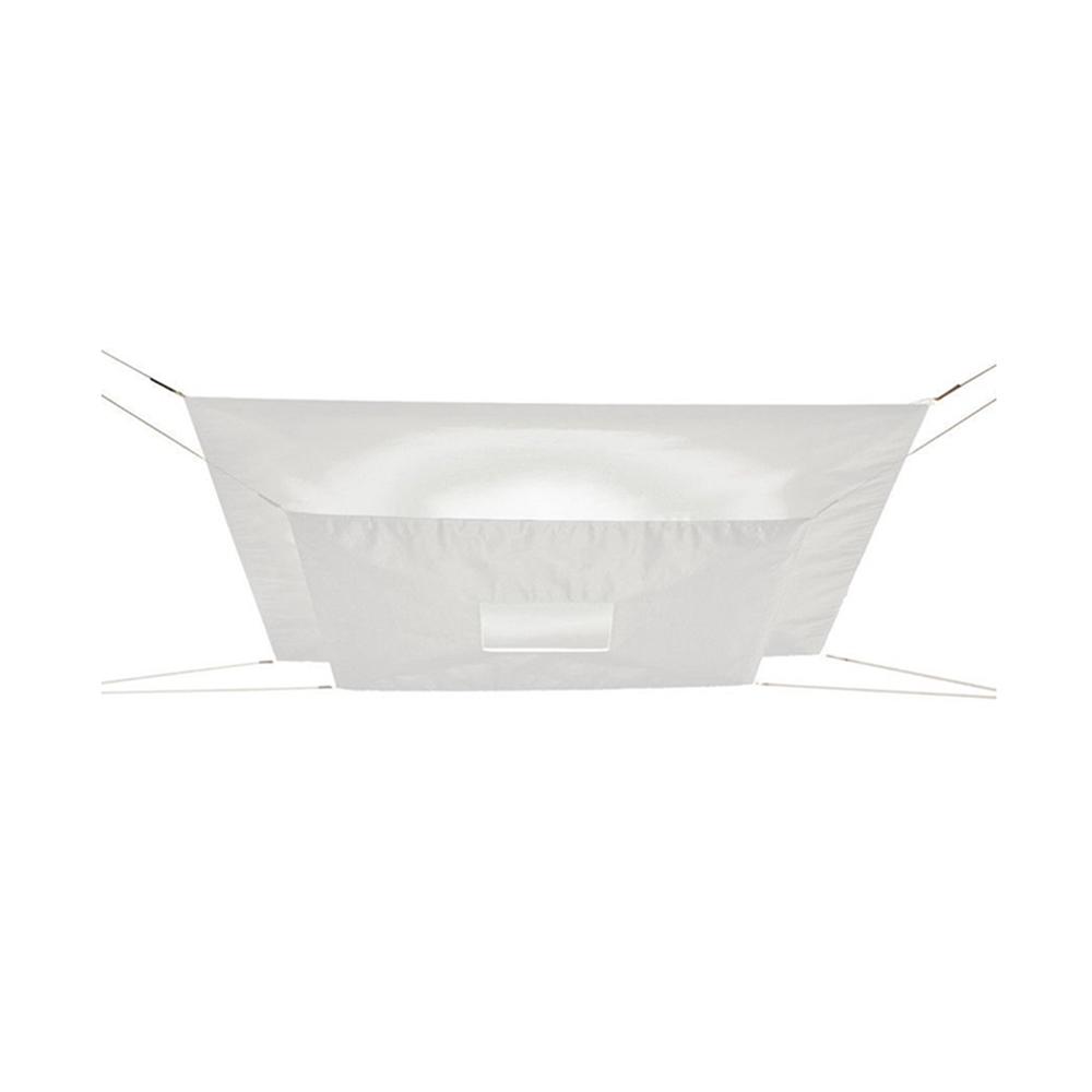 Dimensions des voiles petit : 65 × 65 cm, grand : 89 × 89 cm. Distance entre les fixations au plafond : 150 × 150 cm.