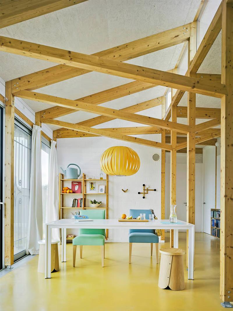 LZF LUZIFER lampe à suspension POPPY MEDIUM (Jaune - Vernis à bois)