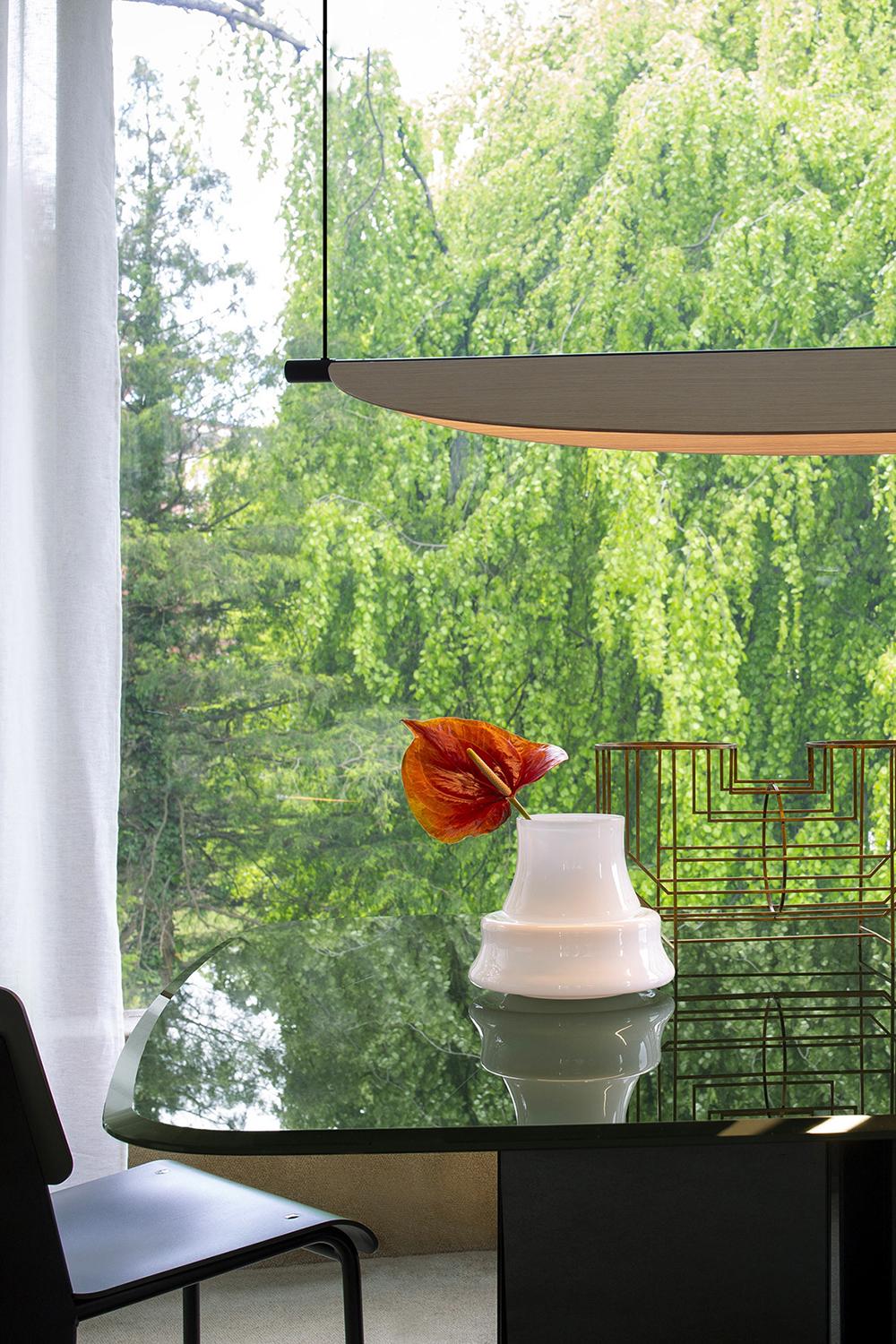 Les lampes Thula Tooy s'articulent autour d'un élément central simple et architectural, à la fonction éclairante, auquel s'ajoute, dans un savant jeu d'additions et de soustractions, une composante organique en bois ou en cuir matelassé. Elles sont équipées d'une LED linéaire à intensité variable ; dans la version murale simple, elle peut être orientée, offrant ainsi un éclairage direct ou indirect.